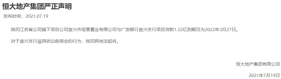 恒大集团则表示,该笔借款要明年才到期,广发系银行是滥用诉讼前保全,将依法起诉: