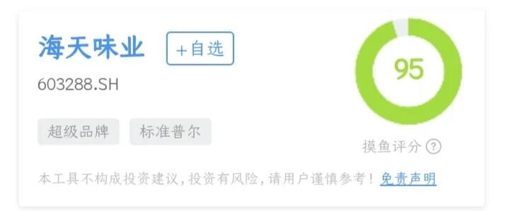 海天味业的摸鱼财报助手打分是95分,财务标签和风险提示可以点击下图查看: