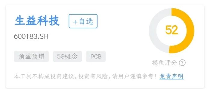 生益科技的摸鱼财报助手打分是52分,财务标签和风险提示可以点击下图查看: