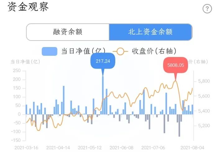 北上资金今天流入了56亿,连续6天流入,态度非常积极。