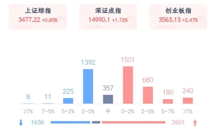 今天市场保持强势,延续反弹,指数涨幅都还挺不错的,创业板涨2.4%,盘后看马上又要新高了,真的是强炸了啊。