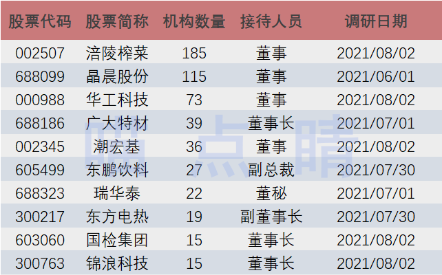 近日涪陵榨菜迎来了185家机构的调研,公司是榨菜行业龙头,公司拥有拥有榨菜、萝卜、泡菜、下饭菜等多个明星主导产品。本次调研对公司成本上涨、渠道库存、毛利率、精品品牌等方面做了介绍。