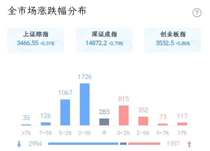 今天市场窄幅震荡,低开后冲高回落,全天指数层面没有太大的表现,结构上看有接近3000家个股是下跌的,市场整体赚钱效应不强。