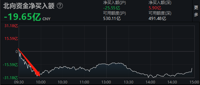 【北上资金观察】北向净流出19.65亿。