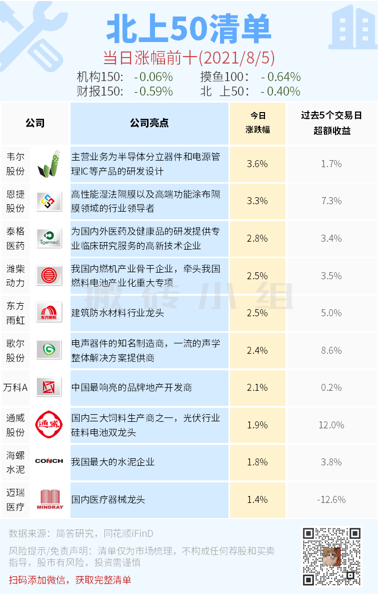 【北上50涨幅前10】