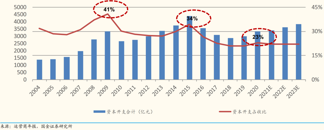 二是三大运营商的资本开支,从2015年到2018年,都是下降的趋势,2019年才有所回升,并没有达到2013到2015年的开支水平。这回中国电信IPO,增加手里的资金储备,后面增加资本开支就有子弹。