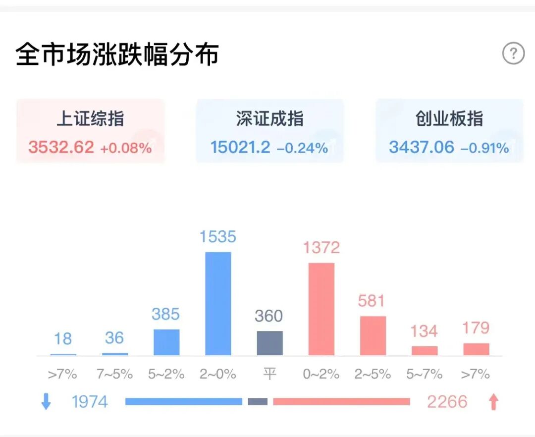 今天市场窄幅震荡,几个指数波动都挺小的,结构上继续保持分化,涨跌各半,赚钱效应并不算特别明显。