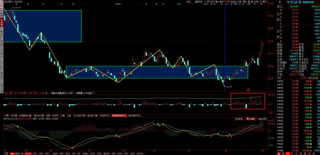 北上50榜单今天更新了,有两家公司新进榜单,其中引起我注意的是中信证券,北上增持了非常多,这个信号我感觉是值得重视的。