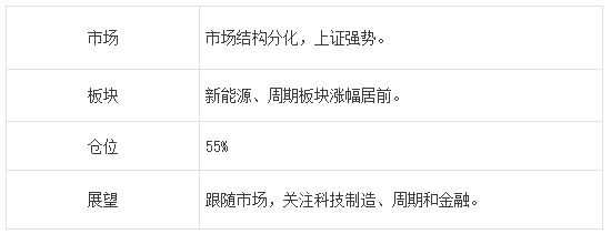 市场当前赚钱效应、流动性、K线都挺好的,这里可以保持乐观一些。策略上仓位继续保持不变,结构上继续关注科技制造、周期和金融方向。