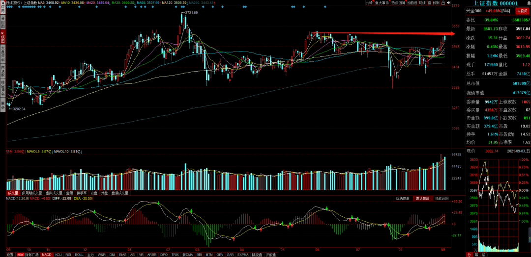 指数层面看,今天市场高位震荡,触及到3600这个上沿有抛压是比较正常的,这个位置看上证指数下面有诸多均线支撑,下跌的空间也不大。