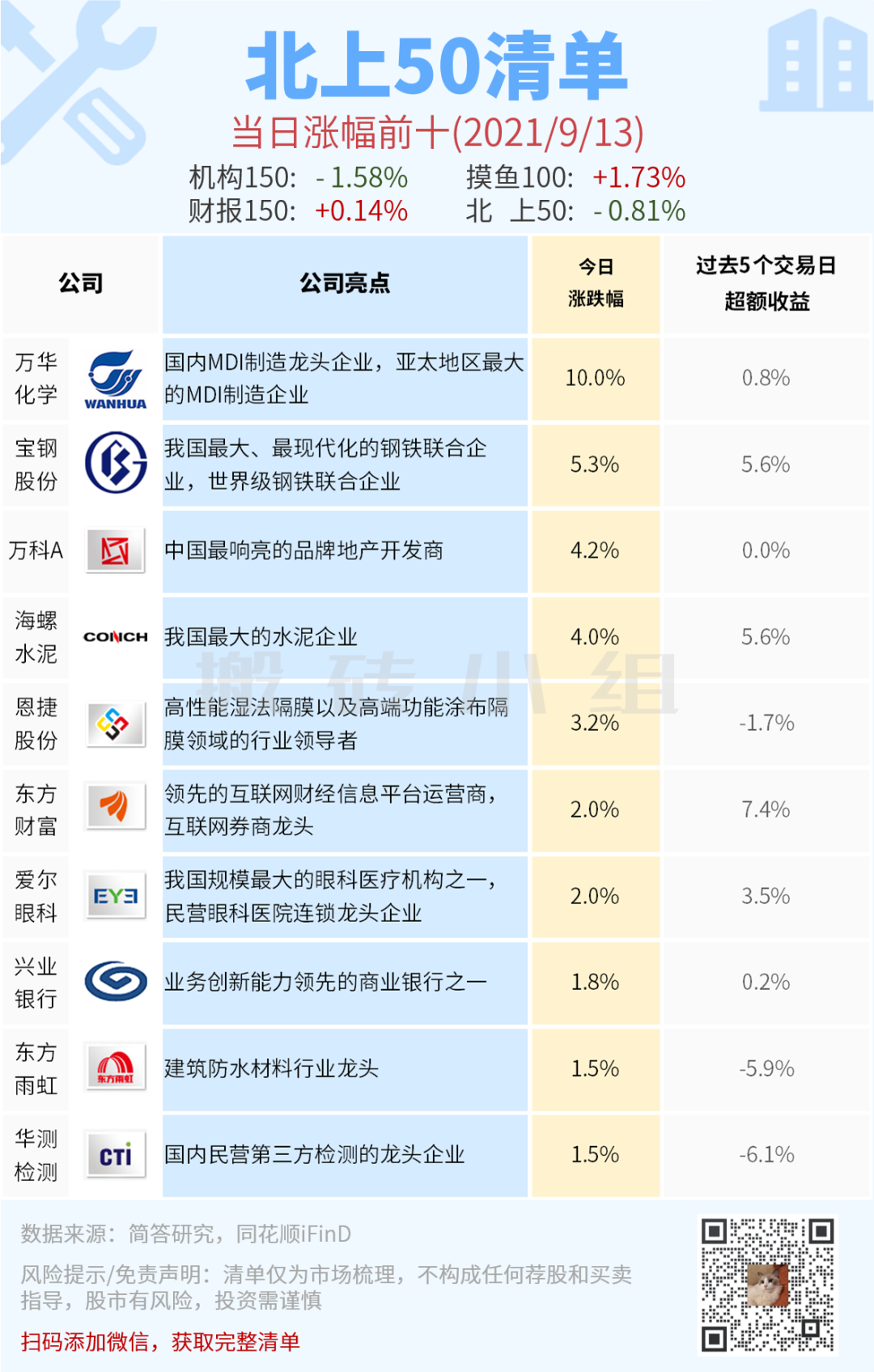 北上50榜单今天表现比较差了,上榜的大多都是传统龙头,市场当前的偏好比较明显转移到了低估值上面,这是值得重视的。