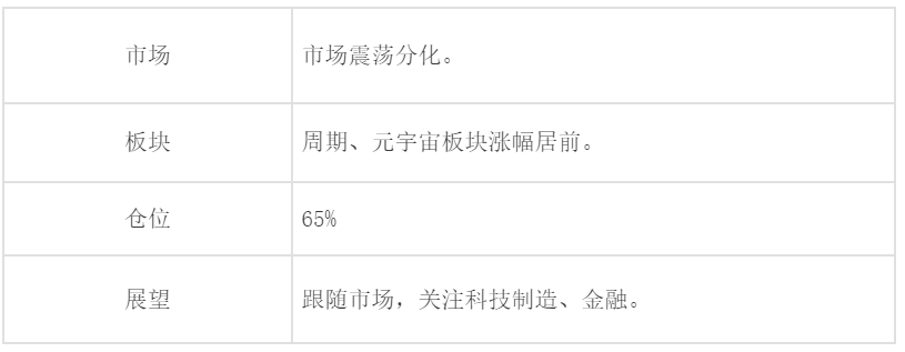 策略上,继续保持乐观态度跟随市场。结构上,保持对科技制造和金融的关注,周期按照规则等待减仓信号。