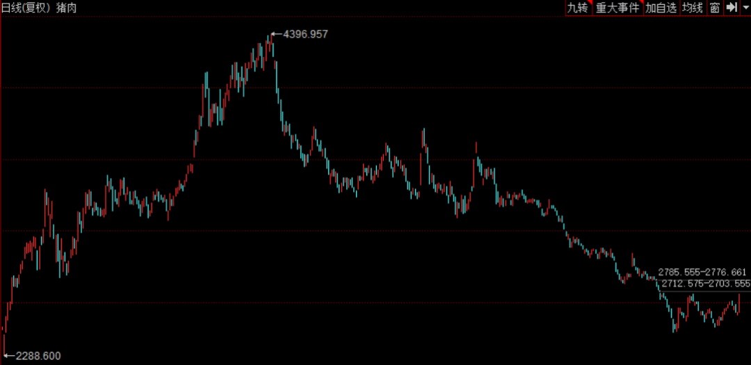 周期股的特点是,总会涨着涨着就穿上了成长股的马甲,让一部分人忘记它的本来身份。不过回顾过去两年猪肉股的例子就会感受到轮回的力量,周期股一旦越过景气顶部,等待的就是漫漫归途。