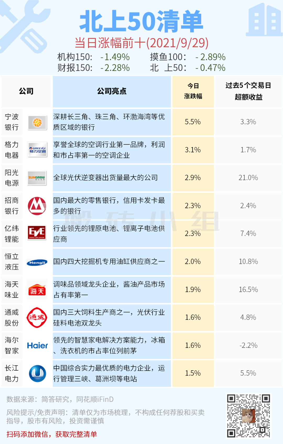 北上50榜单今天表现是很一般了。排名第二的格力出了个回购股份注销的计划,今天给了比较正面的反应。但是格力现在市场担心的是公司的业绩和治理问题,这个回购股份注销虽然可以增厚EPS,但是根本问题没有解决,市场也不容易买账。