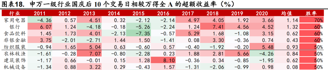 行业方面,历史数据显示,家电、金融、食品饮料等价值类方向在节后往往会呈现出超额收益,这和四季度市场的估值切换倾向有关,因为这一阶段既是业绩窗口,同时又是机构的结账季,资金会本能的重视基本面和性价比。