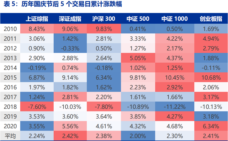 不过国庆节后,往往会呈现出反转效应,从过去十年的数据来看,宽基指数节后5个交易日的平均涨幅还是比较突出的。所以现在吃面不要郁闷,节后兴许就会加肉了。