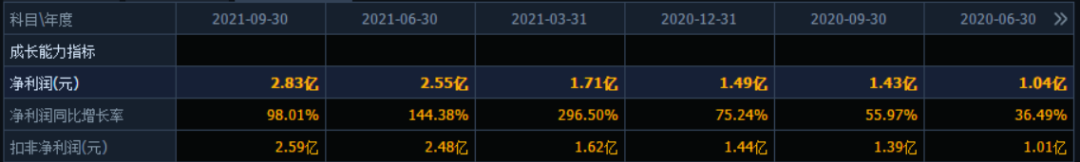公司前三季度净利润7.09亿元,同比增长144.09%,Q3单季净利2.83亿元,同比增长98.01%,环比增长11%。算上这次,爱美客已经连续六个季度净利润环比增长,成长性确实很猛。