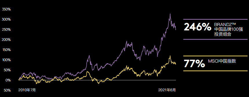 经过多年的数据显示,品牌价值增长的核心要素来自于三点:有意义、差异化、突出性。我想了下,差不多可以理解为处在大赛道上,同时有自己核心竞争力和护城河的龙头公司。如果将这个榜单编制成指数,收益率对标同期的综指优势很明显,体现了品牌的价值。