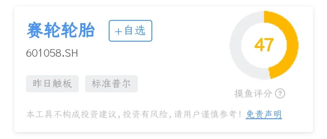首先打开财报助手,赛轮轮胎打分为47,这个分数段说明赛轮的财务评价排位很一般,不算突出。当然我们都知道,分数是一个压缩了大量复杂信息的结果呈现,没法体现公司的方方面面,因此我们还需要探索公司的标签画像。