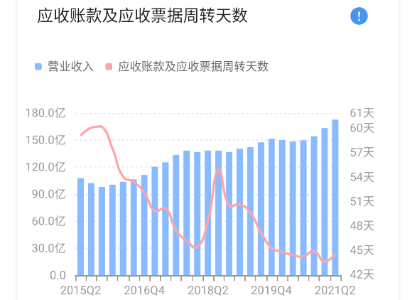 注意两个细节,一个是公司的应收已经连续5年呈现上升趋势了,这部分趋势变化主要系公司扩张市场份额,而自然带来的赊销增长(下图蓝柱)。