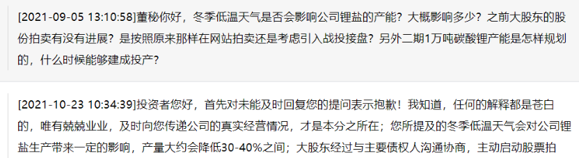 3)藏格控股表示,冬季低温天气会对公司锂盐生产带来一定的影响,产量大约会降低30-40%。这对盐湖提锂的所有公司来说都是一样的,冬季会有季节性的减产。