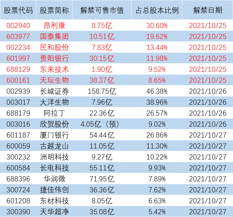 【限售解禁】