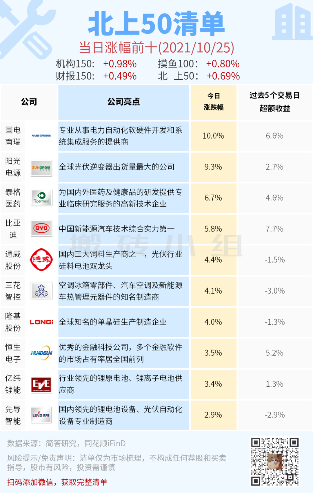 北上50榜单今天表现比较集中,涨幅大的几乎都是新能源,市场存活的主线比较明确。