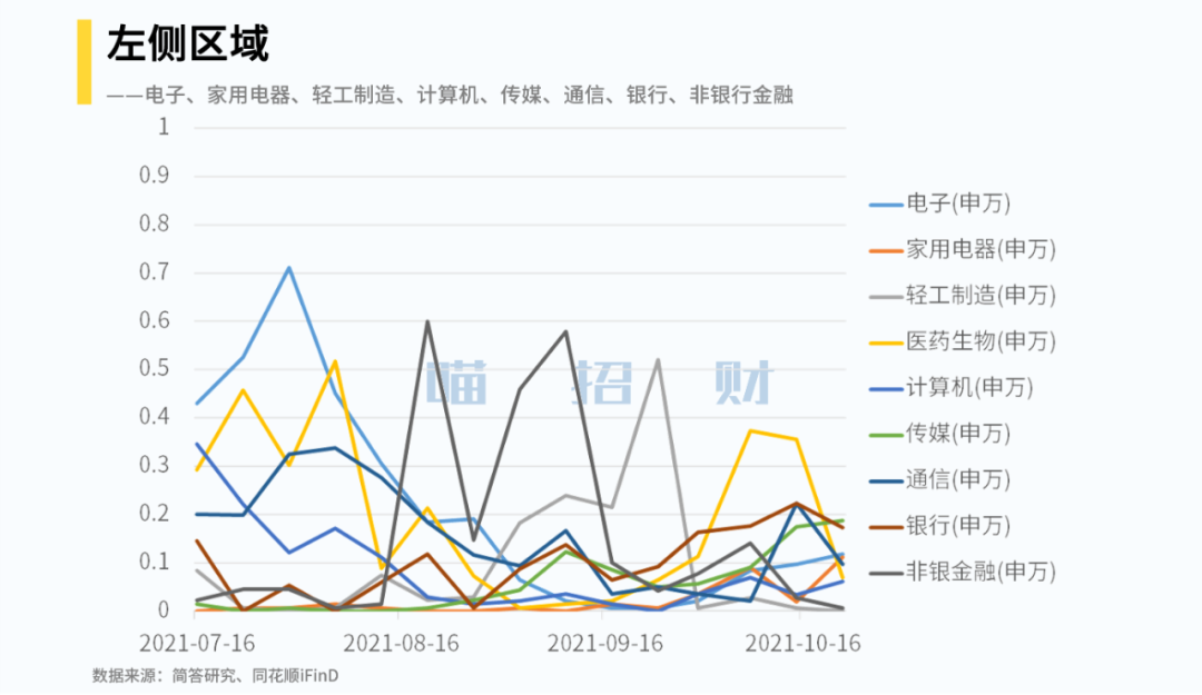 再看左侧区域,TMT、金融、医药、家电都在这里,但这些其实都是有忠实粉丝的方向,所以这几个月拿了这块的,确实感觉市场没机会。