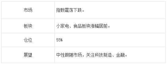 策略上,继续保持中性态度跟随市场,关注的方向里,农业今天出现了破线的走势,所以相应调仓应对,中长期成长的科技制造和低估值金融仍然是配置仓的基本盘,混着就行了,大的动作仍然等市场明朗以后再决定。