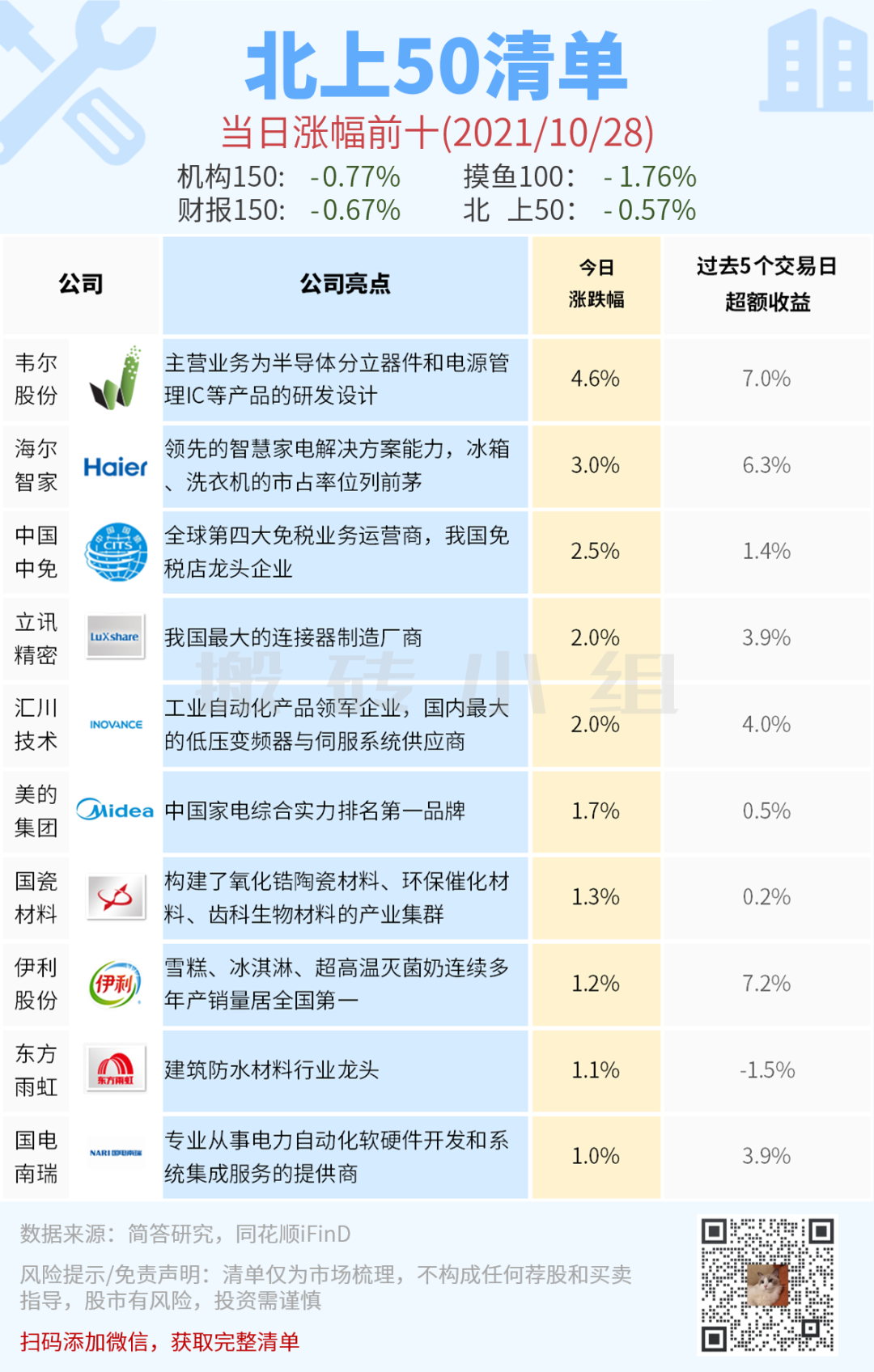 北上50榜单今天表现挺一般的,倒是上榜的立讯有点意思,昨天出了三季报大家都感觉雷了,结果日内走了利空落地,这说明消费电子的差市场之前已经有很充分的预期。