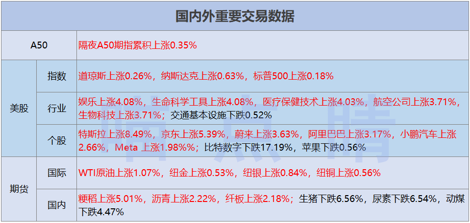 3、富时罗素考虑对富时A50指数作出重大调整,可能将成分股比例提高一倍至100家。富时罗素CEO表示,市场在变化,经济在变化,指数需要更新,以反映投资者当前寻找的投资机会的透明度。