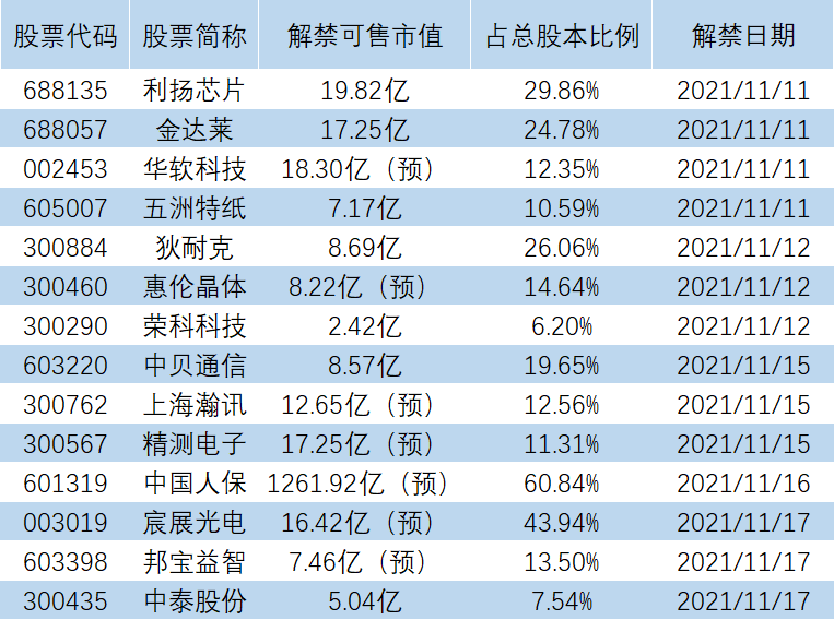【限售解禁】