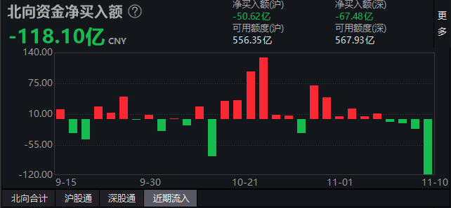 北上资金今天大幅流出118亿,当前已经连续4天流出且累计超过100亿了,对于这块的观察要转为谨慎。