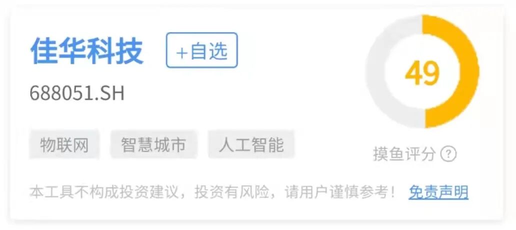 佳华科技财报助手打分是49分,财务标签和风险提示可以点击下图解锁后查看