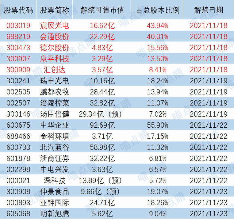【限售解禁】