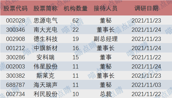 这里比较值得关注的是管理规模大的顶流基金经理,不仅本身的权重很大,一举一动也会起到示范作用,引起市场的涟漪效应。昨晚我和叶哥整理了一下顶流基金经理11月以来的调研动向,将他们亲自参与调研的公司整理了一下。
