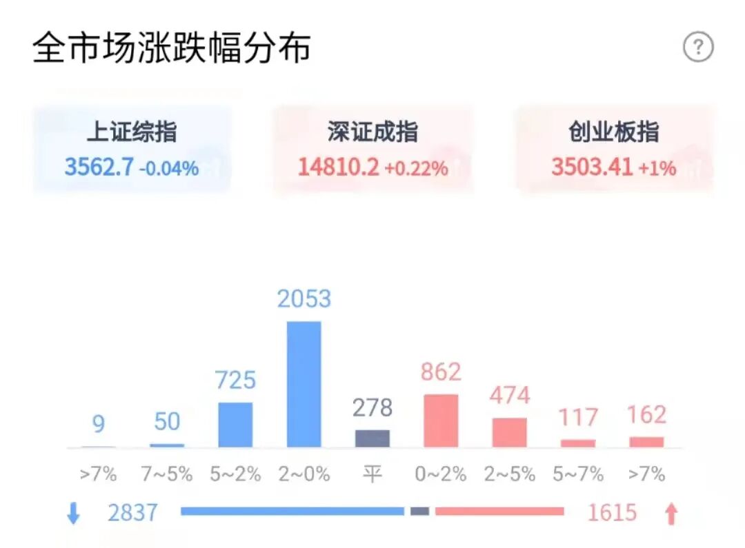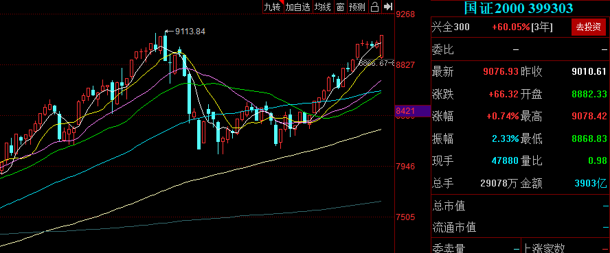 回到今天的盘面看确实也如此,指数日内走了个探底回升,虽然今天全市场有2800只下跌,但全市场还是有赚钱效应的,国证2000甚至干了个新高出来。