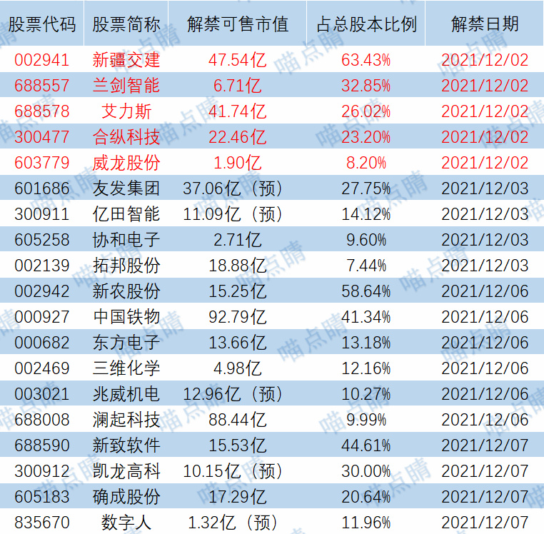 1、富时罗素的季度审核变更,将于12月17日星期五收盘后生效。其中富时A50成份股将纳入亿纬锂能、海尔智家、片仔癀,剔除海螺水泥、美的集团、三一重工。备选股名单为宁波银行、赣锋锂业、阳光电源、韦尔股份、恩捷股份。
