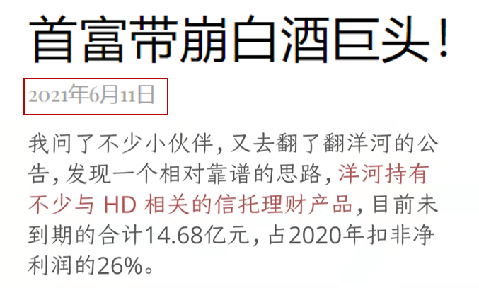 咱们在6月份就统计过洋河持仓某大地产理财产品的情况,目前暴露的金额,对比洋河的净利润不算大,还算是在可控范围。但厨房发现一只蟑螂,往往就意味着厨房里有一窝蟑螂,公司需要思考一下,投资策略是不是有点激进,过于追求高收益……
