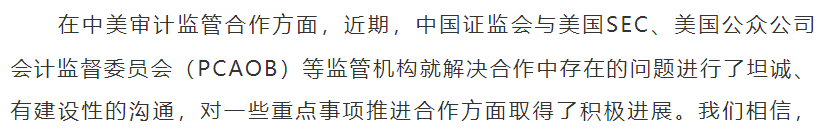 国内监管部门今天回应中概股审计底稿的时候,展现出一些积极信号,比如说双方在解决问题上,“进行了坦诚、有建设性的沟通”,还有辟谣“禁止协议控制(VIE)架构企业赴境外上市”的说法等。