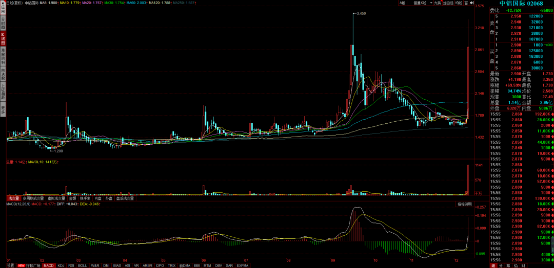 而其他的锂倒是涨得挺欢,最强的是中铝国际的港股,今天差点就直接干翻倍了,消息上说公司的盐湖提锂技术比较领先。锂矿和盐湖提锂的公司,后面的刺激点就是看Q4业绩了,能出业绩的市场还是会愿意给点估值的。