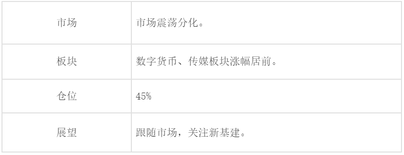 短期策略上,继续保持仓位跟随市场,结构上继续往低位的新基建偏移一些,无论是从估值还是预期角度看都更加合适。