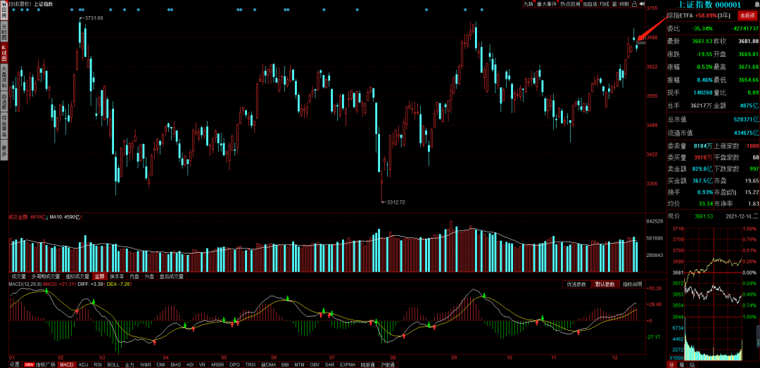 市场今天整体调整,成交额缩小到了1.14万亿,这轮市场虽然上涨了,但是从成交额看确实没有特别大的增量资金出现,并且今天还出现了岛型反转,这里依然保持中性态度跟随。