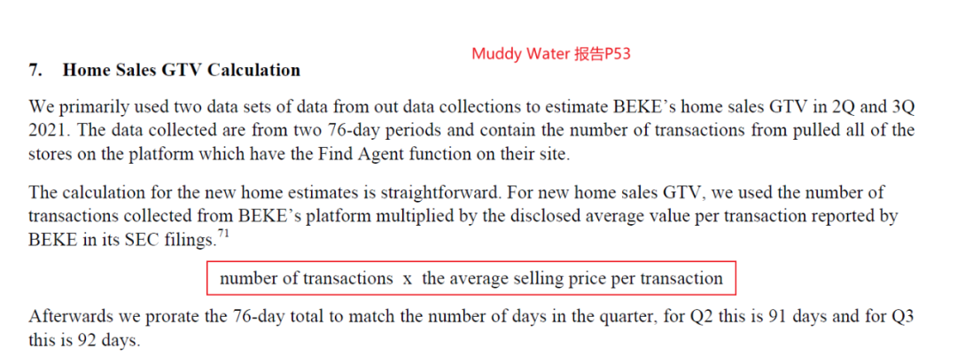 浑水长篇累牍的质疑贝壳虚增总成交价值GTV,除了正文部分外,还专门花了一个appendix章节来介绍自己的建模方法,前后加起来光是质疑GTV的部分就占了35页。