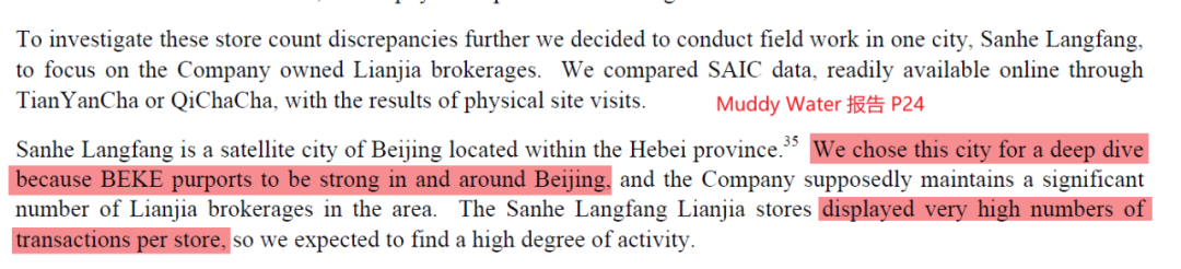 至于谈及鬼店时,选取的采样地点是南昌和廊坊,给出的理由是廊坊的单店成交数量很大(根据浑水自己统计的数据来看确实如此)。