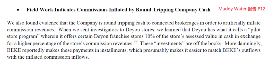 换句话说,就是浑水在质疑贝壳以这种现金流的模式,虚增了自己的佣金收入。