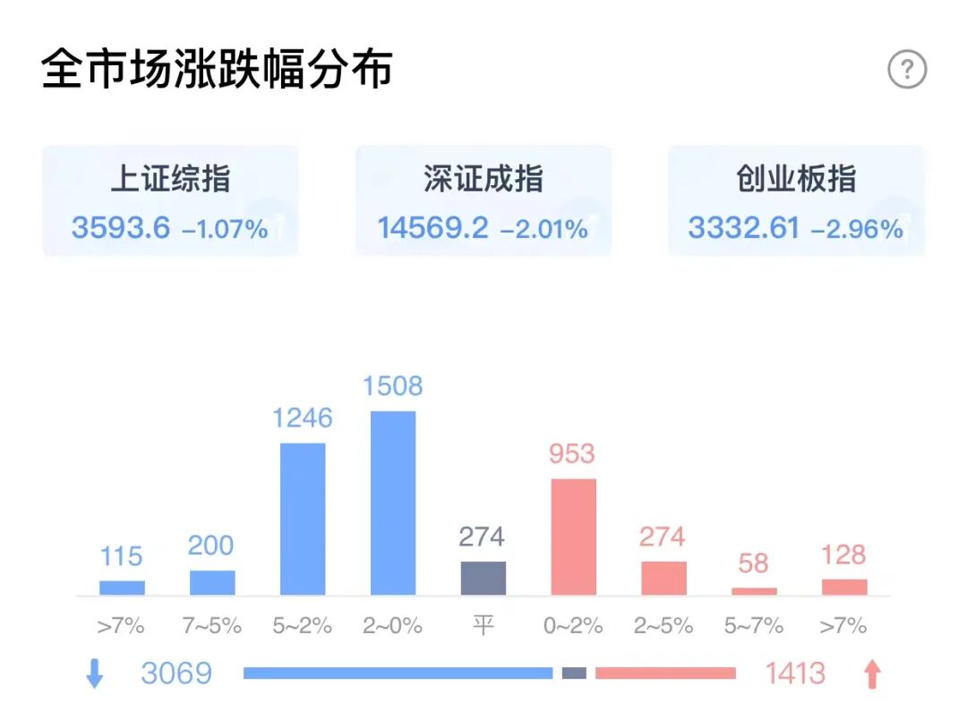 聊回来,市场今天普跌,各大指数都是中阴线,超过3000家个股下跌,今天这个行情真的非常伤人了。