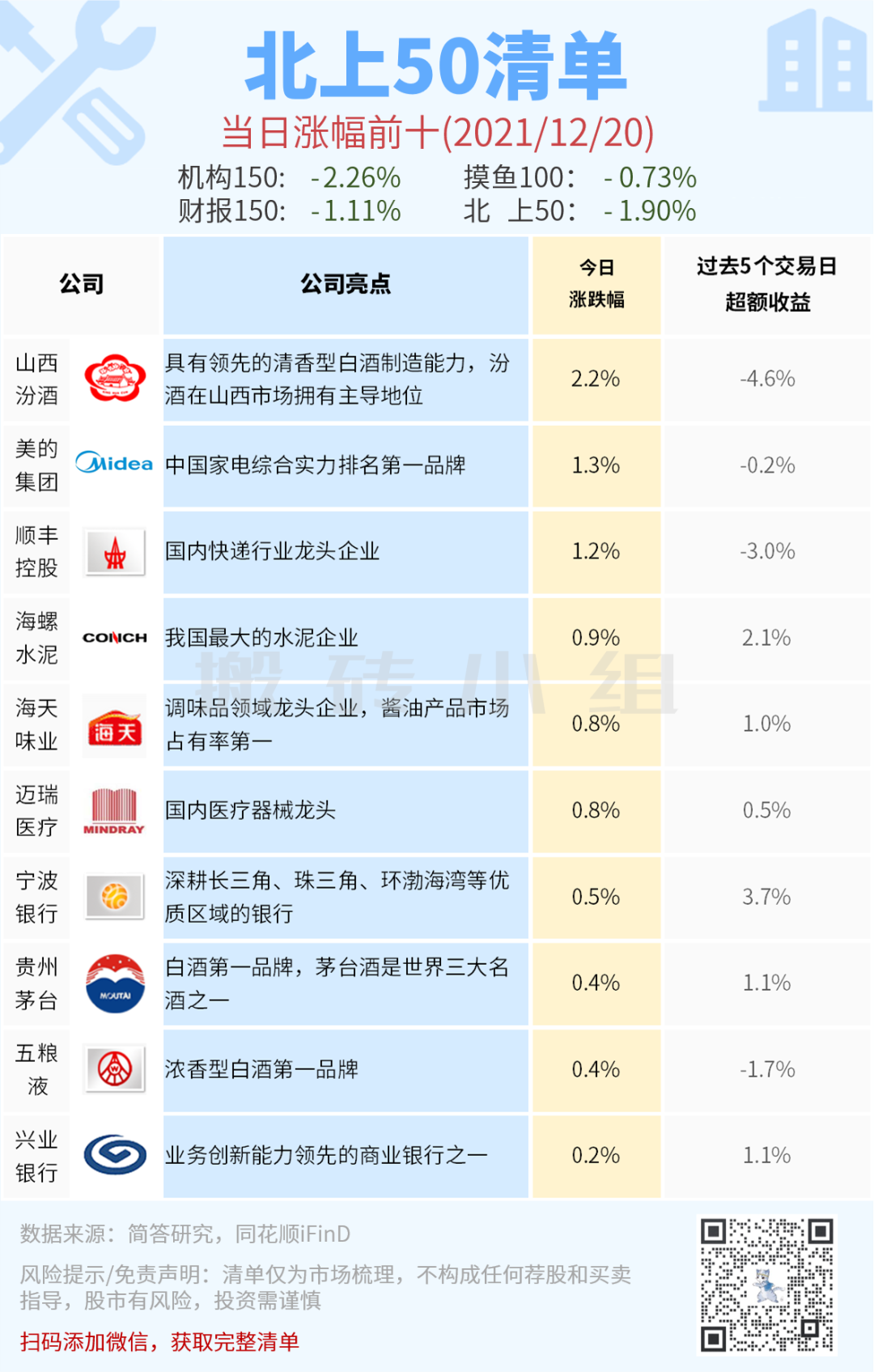 北上50榜单今天表现比较一般了,上榜的大多都还是消费,从盘面看消费感觉又是市场防守的方向。