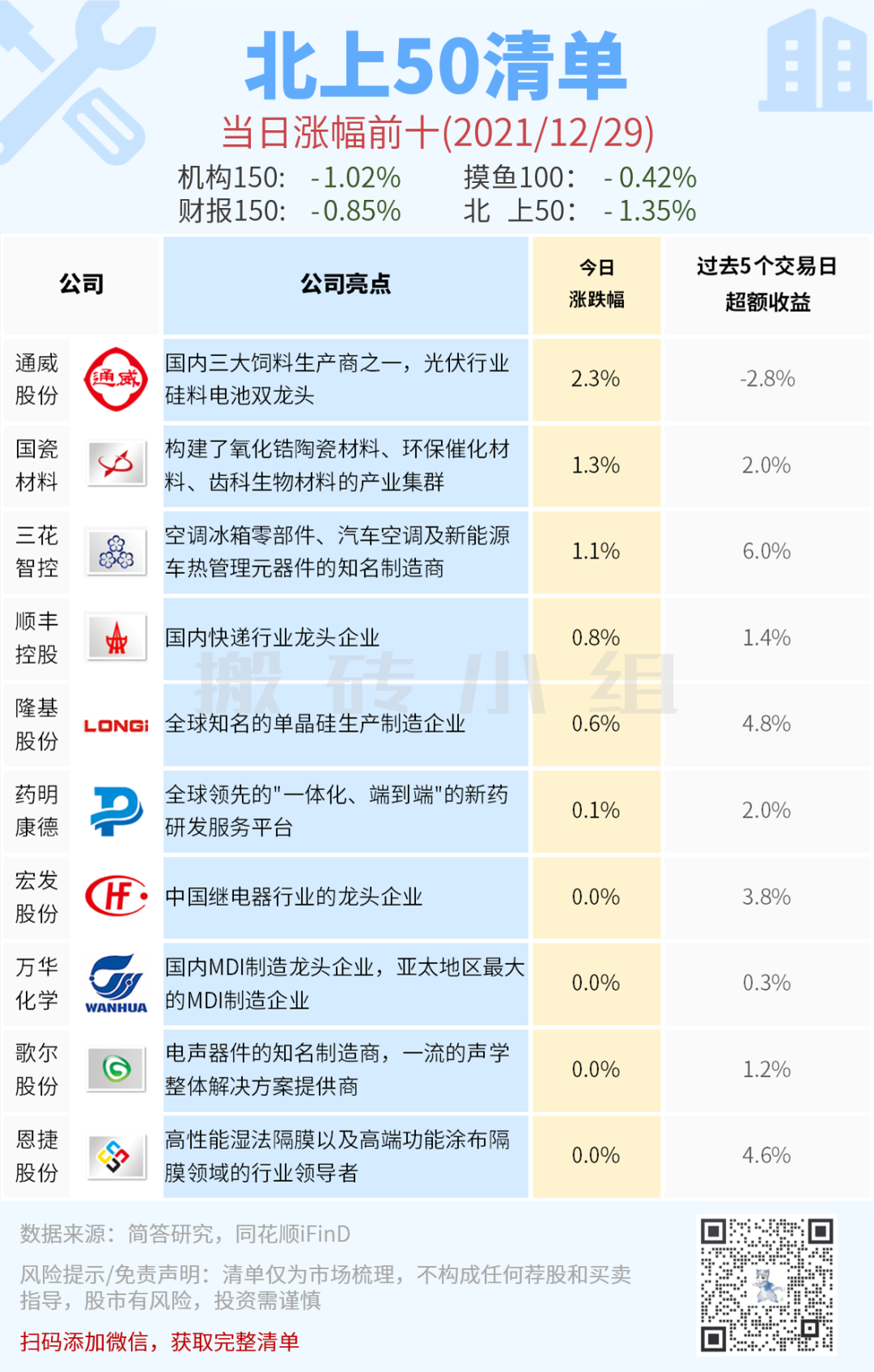 北上50榜单今天比较惨了,只有8个涨的,机构今天跟大伙儿一起亏钱。。