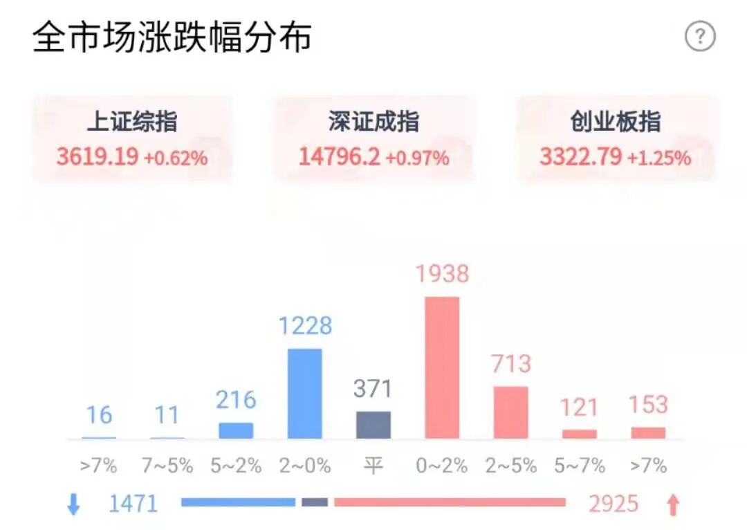 昨天市场萎靡了一整天,今天终于反弹起来了,各大指数全部上涨,不少还出现了阳包阴的走势,今天算是小回血行情了~